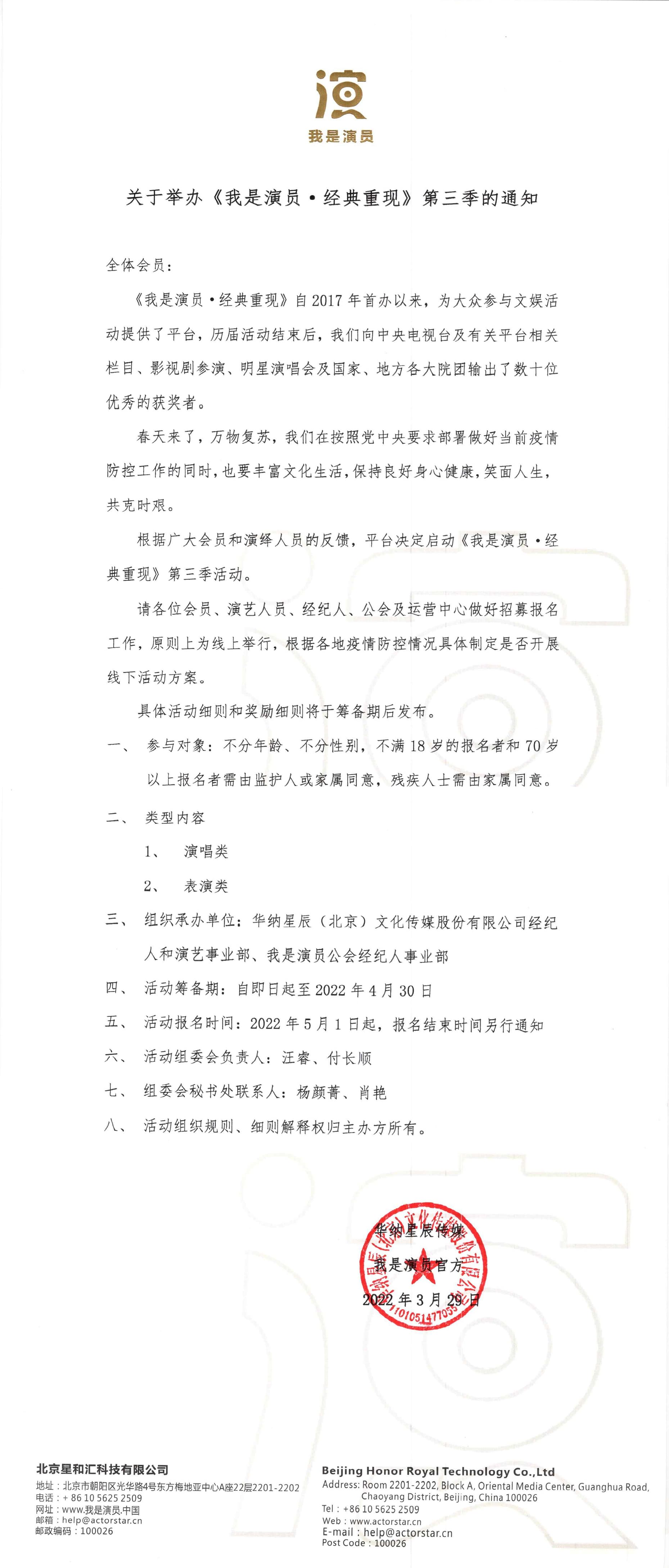 b.本隐私政策更新后,我们会在我是演员发出更新版本,并在更新后的条款生效前通过官方网站(http://www.actorstar.cn)公告或其他适当的方式提醒您更新的内容,以便您及时了解本隐私政策的最新版本。